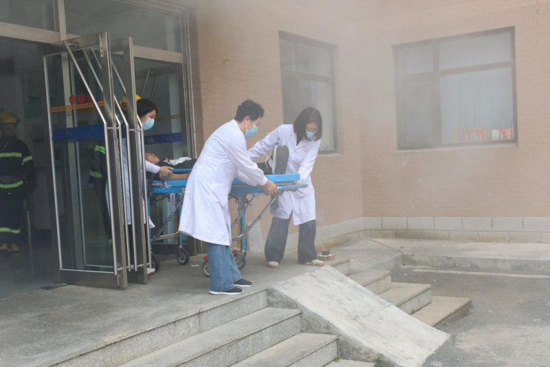 演練中模擬了知書園學生公寓某宿舍出現“火情”,并有學生被困場景。接到學生報警后,校內微型消防站義務消防隊隊員立即到達起火房間,使用滅火器對初期火情進行撲救。幾分鐘后,消防救援人員到達現場,采用云梯消防車、多功能搶險救援車等裝備進行滅火,“火情”被成功撲滅,被困學生也全部救出。醫療救護組對在“火情”中受傷的人員進行緊急救治。